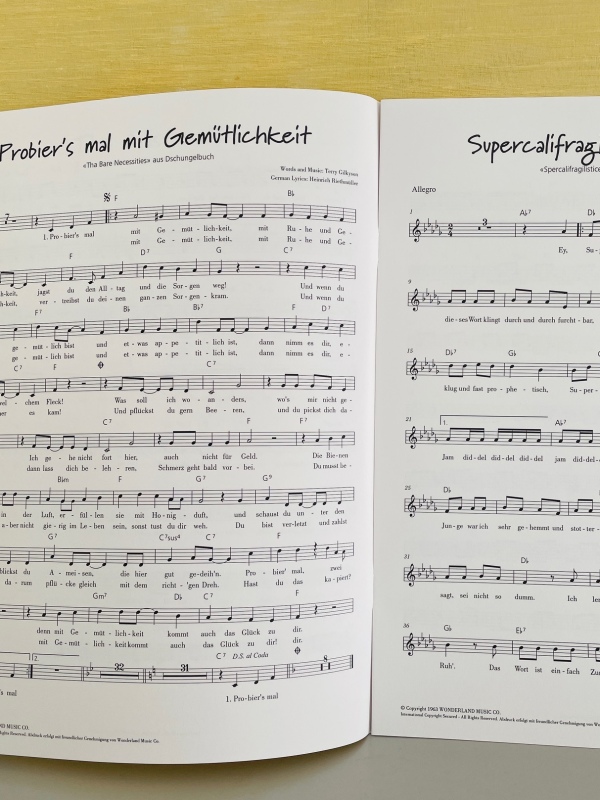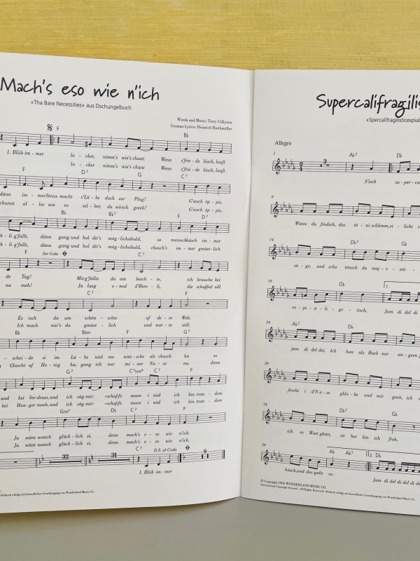 Beliebte Lieder aus Disneyfilmen mit Klavierbegleitung, deutschem und schweizerdeutschen Text .